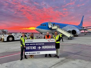 Maandag 3 november 2025 | Luchthaven Oostende-Brugge en TUI fly hebben vandaag de eerste wintervlucht naar Hurghada feestelijk ingehuldigd. Waar de populaire Egyptische badplaats tot nu toe enkel tussen april en oktober bereikbaar was vanuit Oostende, kunnen reizigers voortaan het hele jaar door rechtstreeks naar de Rode Zee vliegen.